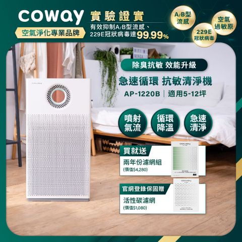 Coway 5-12坪 急速循環空氣清淨機 AP-1220B(送兩年份耗材組)(官網登錄保固贈活性碳濾網)